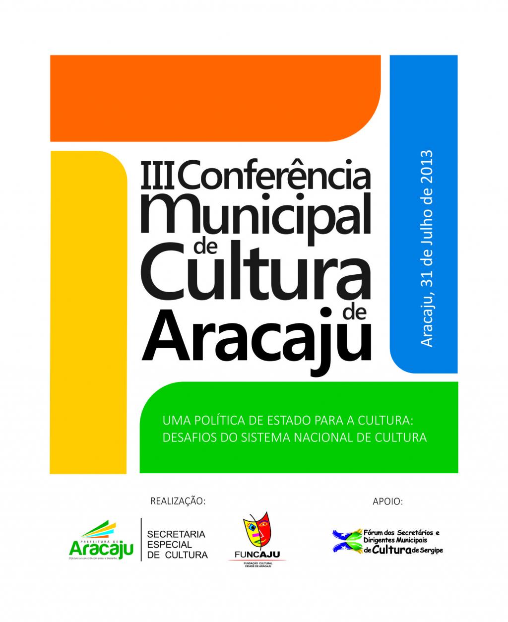 A conferência deste ano debaterá "Uma Política de Estado para a Cultura: Desafios do Sistema Nacional de Cultura". As inscrições serão feitas no próprio local, a partir das 7h30. A abertura oficial ocorrerá às 8h30, seguida da palestra "O Sistema Municipal de Cultura de Laranjeiras: Uma experiência", que será proferida pelo secretário de Cultura de Laranjeiras, Irineu Fontes. O palestrante é também presidente do Fórum dos Secretários e Dirigentes Municipal de Cultura de Sergipe e vice-presidente do Fórum Nacional de Culturas das Capitais e Regiões Metropolitanas.