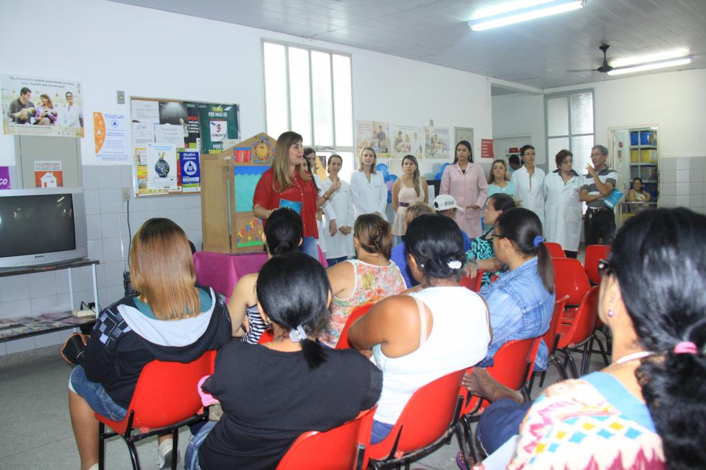 8h_ Palestra com as gestantes na sala de espera sobre a amamentação com a enfermeira, assistente social e estagiários de enfermagem. Ação é parte da Semana de Aleitamento Materno em Aracaju.