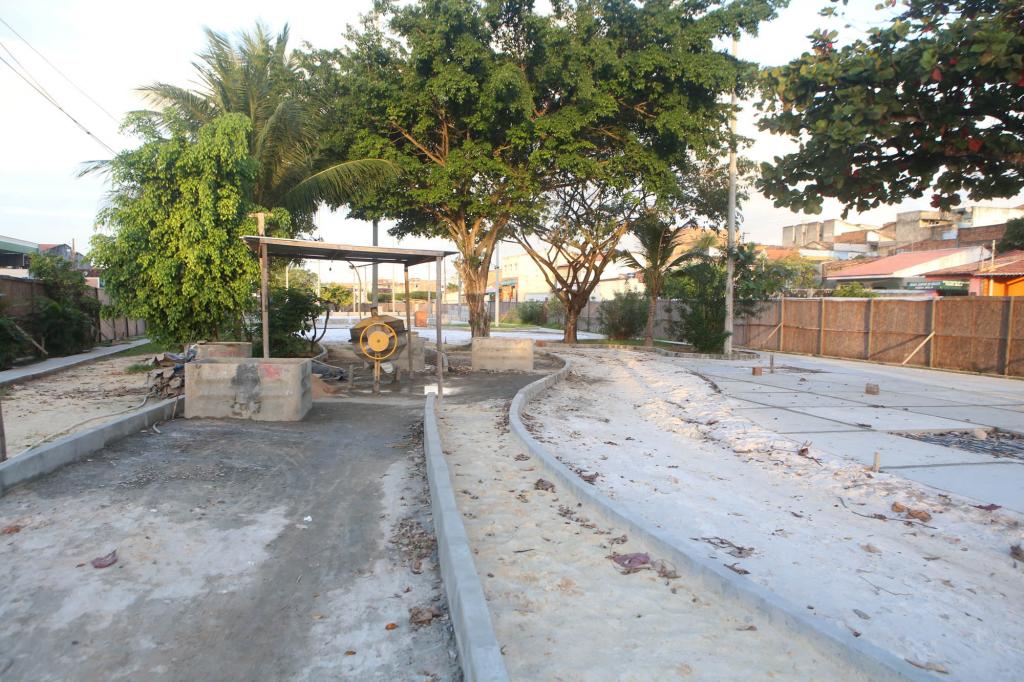 "Estamos regularizando o piso para colocar o concreto na parte externa. Na parte interna já estamos em fase de conclusão da acomodação das pedras portuguesas, já vamos começar a pintura dos postes, os bancos já foram colocados, os poços artesianos já foram instalados e estamos com 80% da obra pronta", detalhou o mestre de obras, Humberto Gomes.