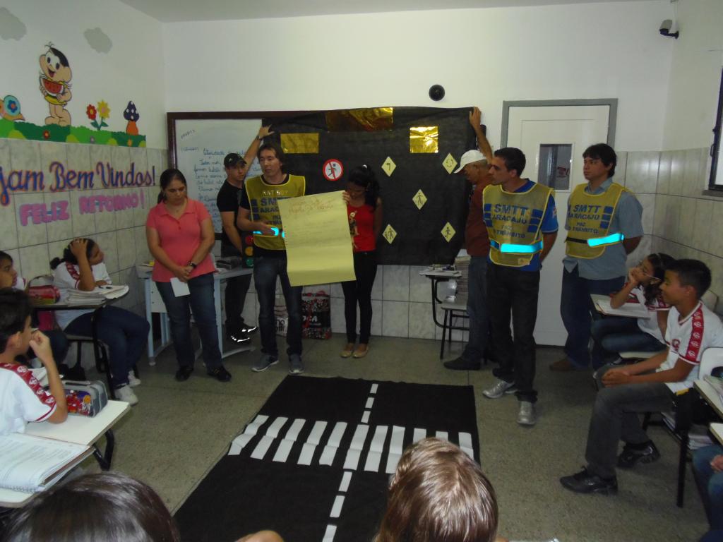 Nesta sexta-feira, 9, os 90 excedentes do último concurso da Prefeitura Municipal de Aracaju (PMA) para Agente da Mobilidade Urbana da Superintendência Municipal de Transportes e Trânsito (SMTT), vinculada à Secretaria Municipal de Defesa Social e da Cidadania, participaram da ação de educação para o trânsito no Colégio Santana, no conjunto Castelo Branco, como quesito avaliativo do curso de formação profissional iniciado no dia 29 de julho.