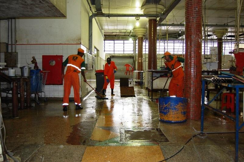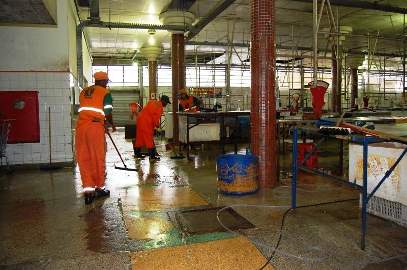 "O fluxo diário é de quase quatro mil pessoas, entre visitantes, funcionários e permissionários do mercado. O montante de resíduos deixado é grande, e infelizmente nem todos jogam o lixo no lugar certo. Nossos agentes fazem varrição e recolhimento diário de lixo, mas a limpeza semanal é imprescindível para manter tudo limpo. Os setores de carnes e pescados naturalmente recebem atenção maior pelo tipo de resíduo que produzem", explica o diretor de Espaços Públicos e Abastecimento, Luiz Carlos.
