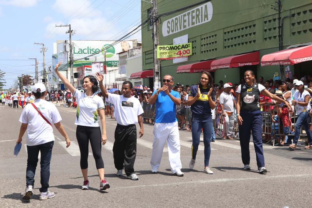 Ex-atletas sergipanos também marcaram presença no Desfile Cívico Municipal realizado neste domingo, 1º de setembro. Carlos Bossa Nova, ex-jogador de futebol e atual coordenador de Inclusão da Sejesp; Sandra Almeida, ex-jogadora de vôlei e mãe da também jogadora de vôlei Ana Carolina, bolsista da Sejesp; Edvaldo Barreto, o Falcão, lutador de Full Contact e a ex-ginasta Larissa Barata, endossaram o coro da importância de participar do desfile.