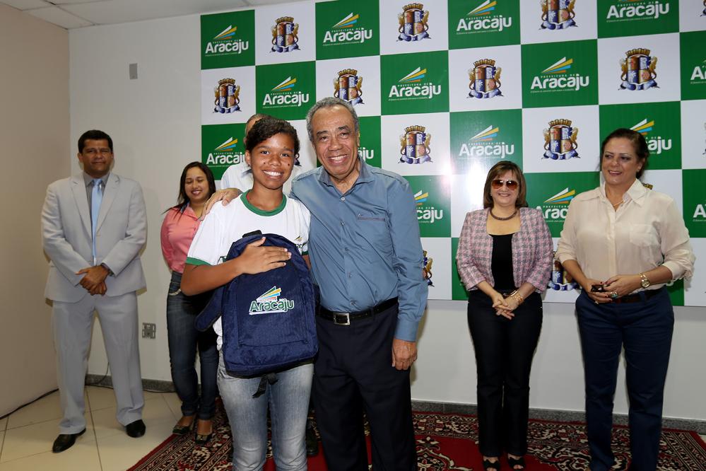 Dando continuidade aos investimentos na qualidade da educação municipal, o prefeito João Alves entregou hoje, 5, no auditório do Centro Administrativo Prefeito Aloísio Campos, kits escolares aos alunos da Rede Municipal de Ensino. A ação faz parte do Programa de Tecnologia de Gestão nas Escolas (PROTEGE), que compreende todas as atividades da Secretaria da Educação voltadas para o aumento do Índice de Desenvolvimento da Educação Básica (IDEB). Na oportunidade, João Alves anunciou a construção de 6.400 casas populares.