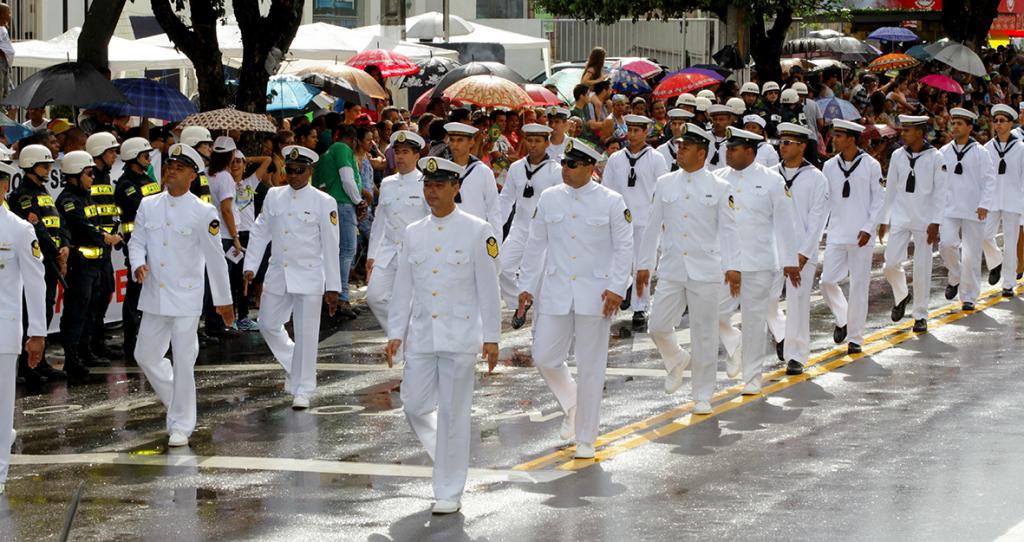 No início do dia, o termômetro que registrava 27º que, logo depois, foi rapidamente compelido por uma fina chuva, mas essa variação climática não impediu que os ex-combatentes da Força Expedicionária Brasileira abrissem caminho para o tradicional desfile de 7 de Setembro, sendo seguidos pela Marinha, Exército, Força Aérea Brasileira, Polícia Militar, Corpo de Bombeiros, Guarda Municipal. Além dos grupos civis e escolares, organizações não governamentais (ONGs) também passaram pela avenida.