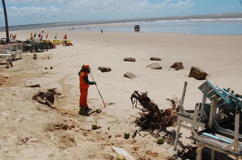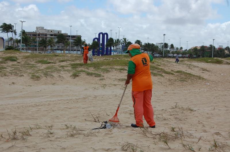 Segundo o diretor de controle operacional da Emsurb, Robert Willyam, por dia são disponibilizados 36 agentes de limpeza distribuídos em três equipes, que recebem para suas atividades o apoio de um caminhão tipo caçamba e de uma máquina saneadora para a retirada do lixo na localidade. "Por dia é recolhida cerca de 1,5 tonelada de material descartado irregularmente na areia da praia pelos frequentadores e donos de bares", finalizou Robert Willyam.