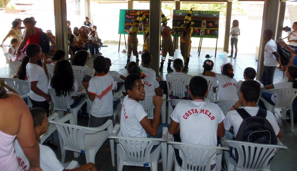 Alunos da Escola de Ensino Fundamental (Emef) José Antônio da Costa Melo participaram, nesta segunda-feira, 23, de diversas atividades educacionais relacionadas à educação no trânsito e saúde. Entre os corredores da unidade de ensino, os agentes de trânsito e demais orientadores da área médica foram, por um dia, os professores desses jovens estudantes, que, movidos pela curiosidade, demonstraram interesse pelos assuntos expostos.