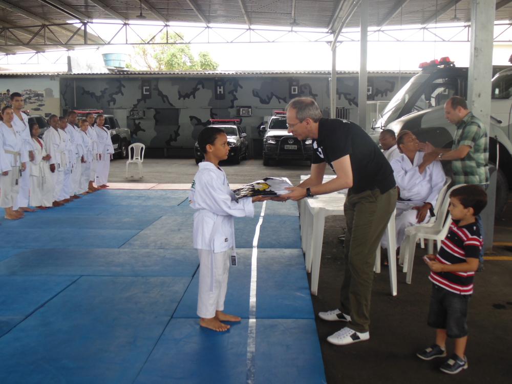 "Quando nós íamos treinar os integrantes do Choque para defesa pessoal, muitas crianças da comunidade perguntavam o que era aquilo e se interessaram em aprender, se aproximando do batalhão. Levamos a ideia de montar o projeto para o Major Rolemberg, comandante do Choque, e conseguimos a aprovação, passando a oferecer as aulas de judô de segunda a sexta-feira no turno da manhã e as segundas, quartas e sextas a tarde", explicou Élvio.