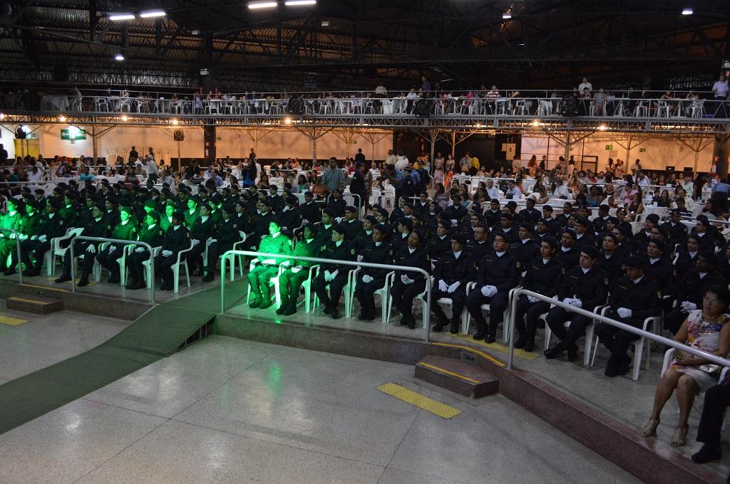 Nesta sexta-feira, 27, a carreira dos novos 147 guardas municipais (GMs) começou a tomar um novo rumo, já que estão devidamente habilitados para executar as atribuições específicas da categoria. Para marcar essa mudança, os recém-ingressos participaram da solenidade de formatura realizada no Espaço Emes onde reuniu o prefeito João Alves Filho, autoridades, instrutores e familiares para entrega dos certificados de conclusão do Curso de Formação, Capacitação e Atualização da Guarda Municipal de Aracaju (GMA) e imposição das insíguineas de guarda municipal da 3ª classe - GM1.