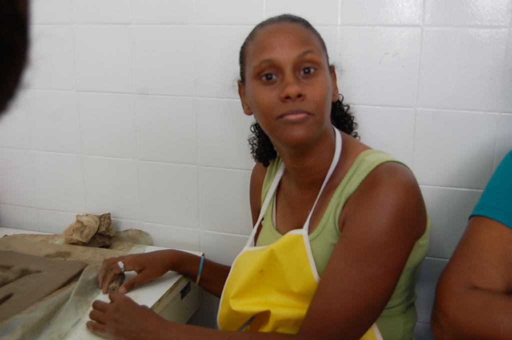 "Tenho vencido a cada dia minhas limitações motoras. As aulas de modelagem têm me ajudado a superar as barreiras", declarou Renata Cristina, aluna do curso de modelagem, também ministrado por Suely Ribeiro. "Essa atenção eu só encontrei aqui na Escola de Arte Valdice Teles. Tenho tido uma atenção especial e isso faz com que eu continue no curso", complementou.