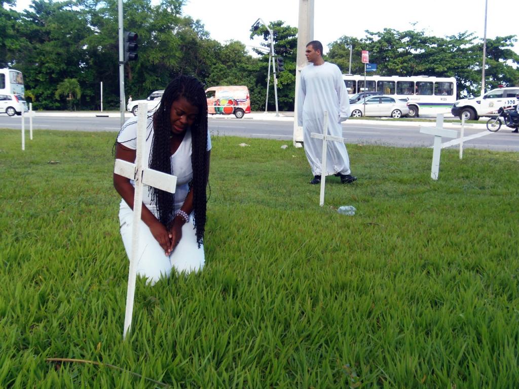 Durante a abordagem aos condutores, o Grupo 'Os Cones' de Teatro da SMTT, fazia uma apresentação no canteiro central da rotatória. A coordenadora da companhia, Tetê Nahas, explicou que os atores estavam representando as vítimas dos acidentes. "Infelizmente sofremos quando pessoas que amamos partem. Precisamos entrelaçar, fortalecer os nossos elos de amizade quando ainda têm vida, no presente, melhorando a nossa vida e a de todos que nos cercam", falou.
