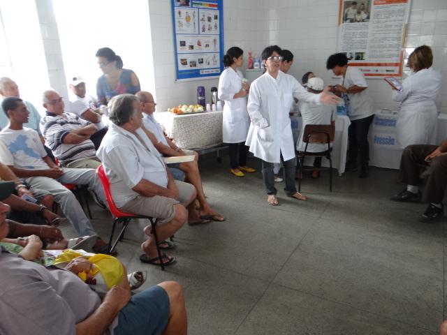Supervisionada pelos profissionais de enfermagem sobre a necessidade de prevenir e tratar o Diabetes nos homens da comunidade. “Do levantamento que fizemos com as fichas das pessoas atendidas no Geraldo e pela professora da Universidade Federal de Sergipe, a estudante de Enfermagem Daniele Correia deixou um alerta estimamos que pelo menos 459 usuários sofram da doença. O que mostra a necessidade de se cuidarem melhor, seja através de alimentação adequada ou mesmo da prática de exercícios físicos e atividades esportivas”, explicou.