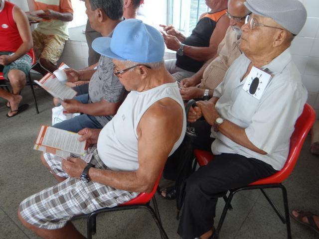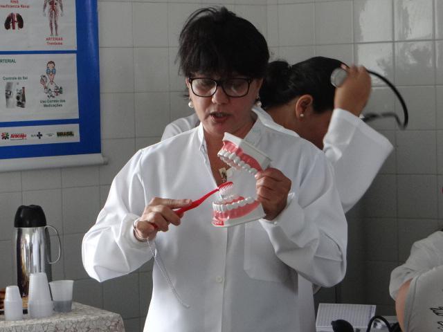 A manhã de atividades foi marcada pelas palestras ministradas pela equipe de profissionais da Unidade de Saúde. A dentista Vilma Noronha falou sobre halitose, um problema que afeta muitos homens e em especial os que possuem hábitos nocivos como beber e fumar. “Para melhorar o mau hálito é preciso deixar os vícios e também cuidar mais da higiene da boca seja usando a escovação, o fio dental e o enxaguante bucal. Temos também casos em que a halitose está ligada a baixa produção de saliva ou outras doenças como a gengivites, por isso é de importante a consulta periódica com o dentista”, enfatizou Vilma Noronha explicando que o gabinete odontológico da Unidade agenda diariamente consultas quando solicitadas.