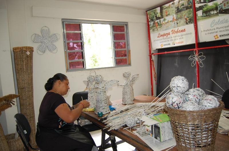 As artesãs do projeto Reciclart - Oficina de Papel, da Empresa Municipal de Serviços Urbanos (Emsurb) -, estão transformando jornal e garrafas pet em enfeites de ornamentação natalina. Diversos setores dos órgãos municipais já receberam os artigos confeccionados no atelier que fica no Parque Augusto Franco - Sementeira.