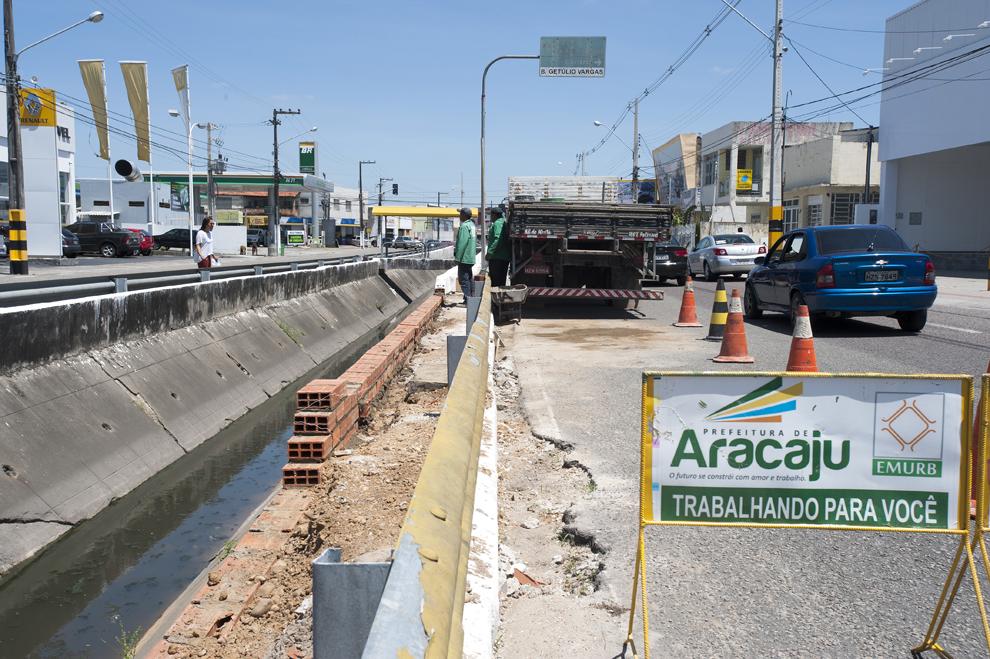 As fortes chuvas do início do mês de novembro provocaram diversos transtornos aos aracajuanos. Um dos locais danificados foi o canal da avenida Gentil Tavares, localizado no bairro Santo Antonio. A mureta e a estrutura de contenção de trechos do canal foram recuperadas pela Empresa Municipal de Obras e Urbanização (Emurb). As ações agora consistem na pintura e na manutenção da calçada. Cerca de dez profissionais da empresa municipal trabalham diariamente no local.