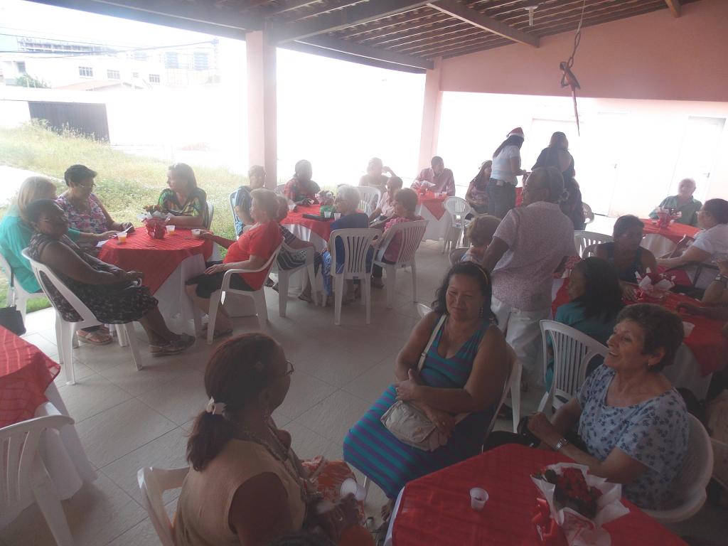 Os idosos do Cras presentearam os colegas da Casa Lar com uma toalha de rosto artesanal. Por volta das 15 horas, foi servido um farto lanche. A festa se prolongou por toda a tarde.