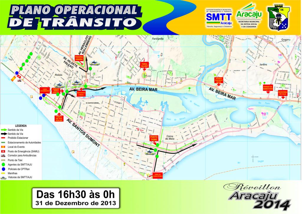 A Superintendência Municipal de Transportes e Trânsito (SMTT), órgão da Secretaria da Defesa Social e da Cidadania, montou um esquema especial em parceria com CPTran e CPRv para o próximo dia 31, a partir das 7h. O objetivo é proporcionar segurança e fluidez no trânsito da capital sergipana durante a festa de Réveillon, promovida pela Prefeitura Municipal de Aracaju (PMA), que acontece na Orla de Atalaia.