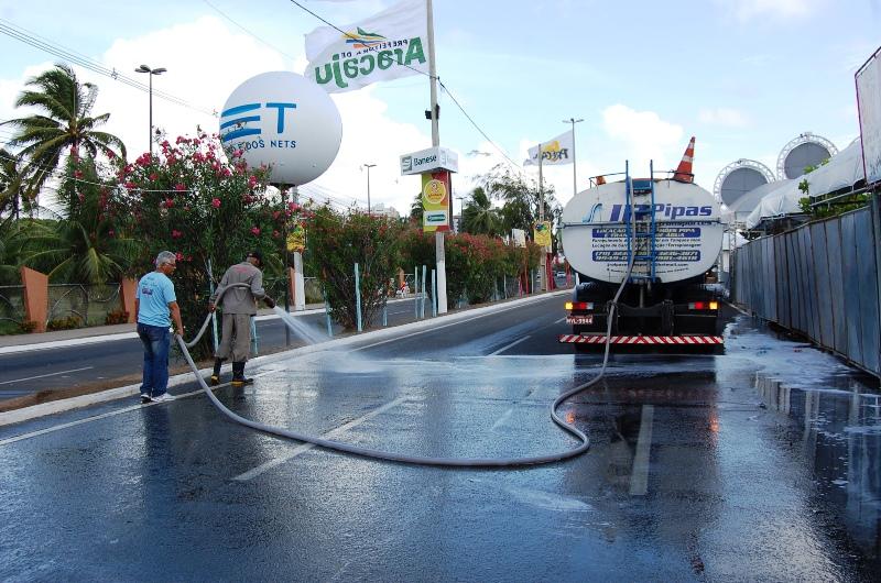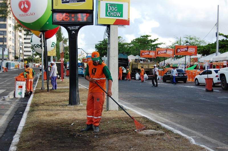 A limpeza começou cedo em toda a avenida Beira Mar, no bairro Treze de Julho. Após a segunda noite de festa, cerca de 480 agentes chegaram à região para garantir o livre fluxo de pedestres e veículos nas vias. As equipes dividiram-se para atender também as ruas de acesso ao local da festa.