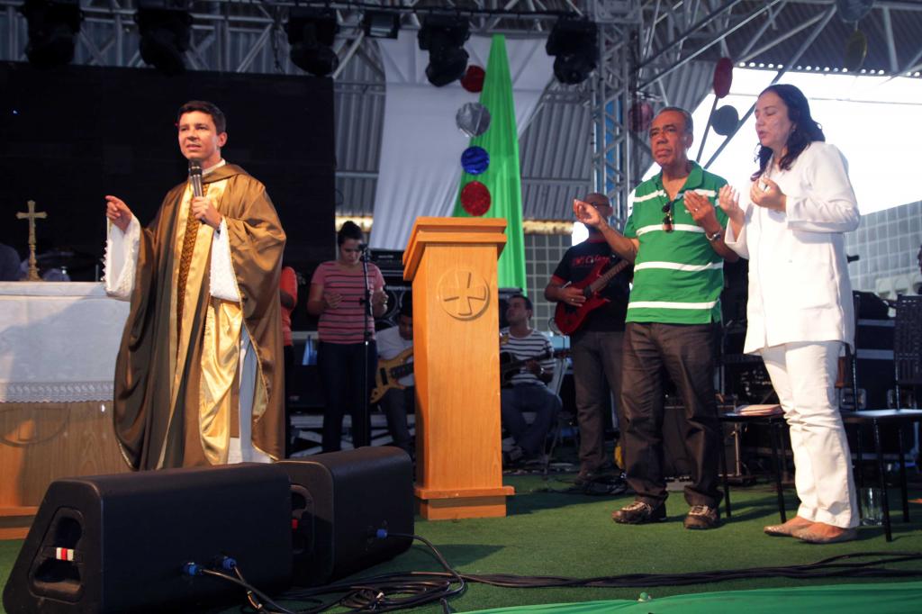 Durante os dias de Pré-Caju a comunidade cristã também comemorou com festa e aproveitou a oportunidade para manter-se em oração. Católico praticante, o prefeito João Alves Filho prestigiou na tarde de ontem, 26, o encerramento do Hosana evento realizado pela Igreja Católica, através da Canção Nova, e que reuniu centenas de pessoas no Centro de Convenções de Sergipe. O prefeito participou da celebração eucarística juntamente com o secretário especial da Cultura, Joselito Vitale (Nitinho).