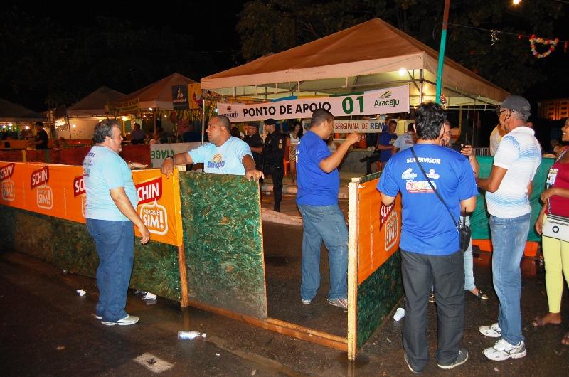 Após a última noite do Pré-Caju 2014, mais de 450 agentes da Empresa Municipal de Serviços Urbanos realizaram a limpeza em toda a região que recebeu a festa. Apesar da chuva que caiu durante a madrugada e do intenso fluxo de veículos na manhã desta segunda-feira, 27, o serviço foi realizado atendendo a previsão de desobstruir toda a área antes da 7h30.