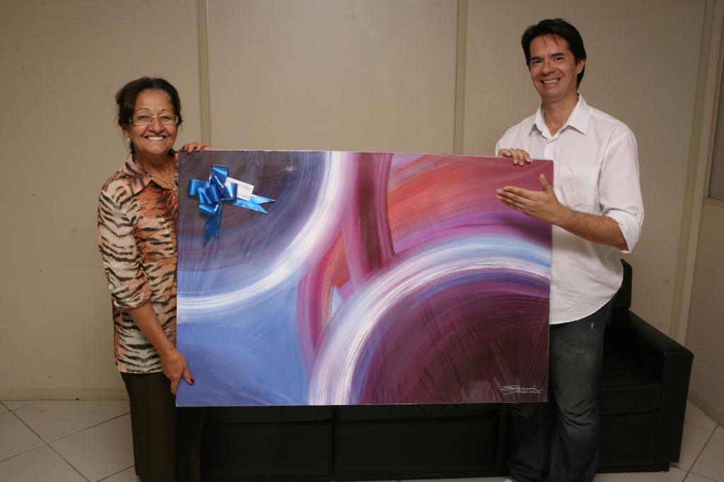 Após exposição realizada na Prefeitura Municipal de Aracaju (PMA) e com resultado satisfatório, o artista plástico, Eduardo Fabião, resolveu presentear um funcionário com um lindo quadro que, depois de vários sorteios entre funcionários das secretarias que funcionam no prédio do Centro Administrativo Aloísio Campos, teve como sorteada a diretora da Secretaria Municipal da Família e da Assistência Social (Semfas), Ângela Acácia Ribeiro.