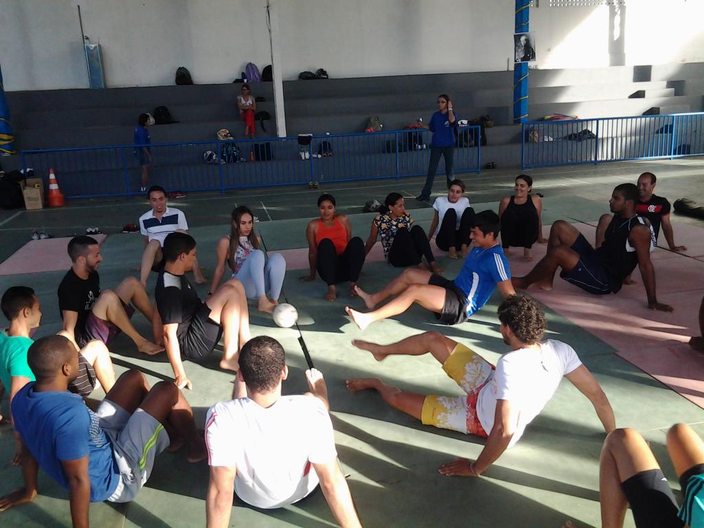 "Essa capacitação é a mesma que foi dada aos coordenadores em 2013, o Ministério do esporte exige que todo o recurso humano tenha preparo. Os monitores aqui se apropriam do conteúdo pedagógico e conhecem nossa proposta a fundo, vemos temas como corpo, gênero e sexualidade e questões relacionadas à deficiência e inclusão, além de materializar todo assunto abordado em demonstrações práticas. Não adianta fazer por fazer, o interessante é que de fato se possua o conhecimento básico e necessário para cuidar das crianças", explica Cássia Fernanda, Coordenadora Pedagógica do programa.