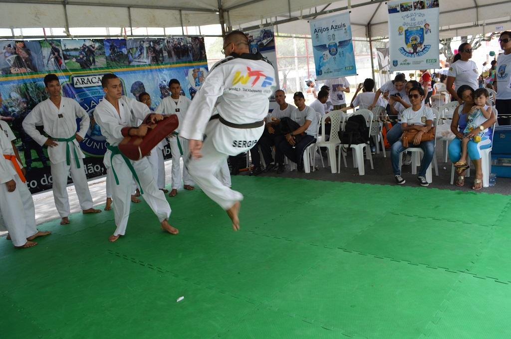 A manhã do sábado, 15, começou com uma demonstração de taekwondo, uma das modalidades oferecidas pela instituição no Centro de Treinamento. O guarda municipal (GM) e atleta GM Geanderson Viana, levou o seu grupo de alunos para mostrar um pouco do trabalho desenvolvido por ele na comunidade do Bugio. "É uma oportunidade ímpar estar aqui contribuindo com esse evento que traz grandes benefícios para a gente e para nossa modalidade. É um esporte olímpico que vem crescendo cada dia mais e nós temos a necessidade de incluir as crianças em projetos como esse para que elas não se desviem dos caminhos e auxilie na formação de um bom cidadão".