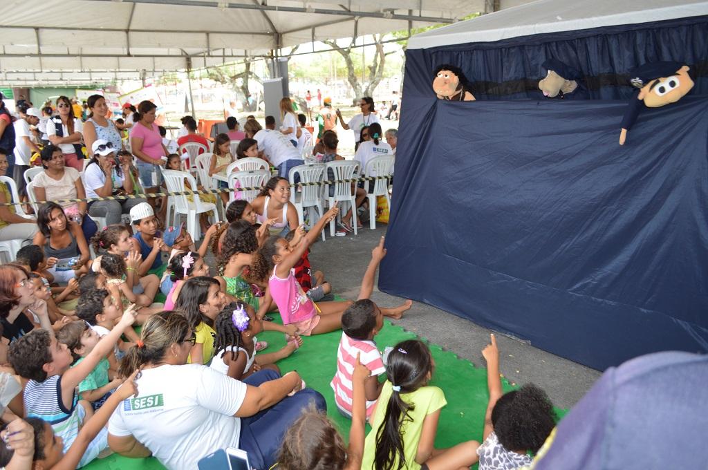 Em seguida, as crianças e os pais acompanharam a apresentação do Teatro de Bonecos do Guarda Cidadã, em que os personagens: Guarda Bela, Guarda Josué, Jaiminho e Alice mostraram como as crianças podem se defender dos mal intencionados. "O tema drogas foi o escolhido para este dia devido a quantidade de jovens presentes no evento. Nós sabemos que esse tema é uma problemática que assola a maioria das comunidades, então pensamos justamente em trazer uma mensagem para conscientizar essa galerinha", justificou a coordenadora do projeto GM Sabrina Smith.