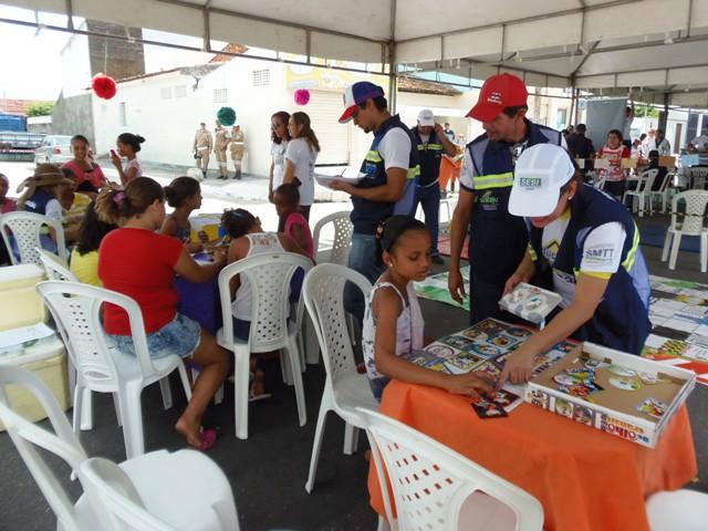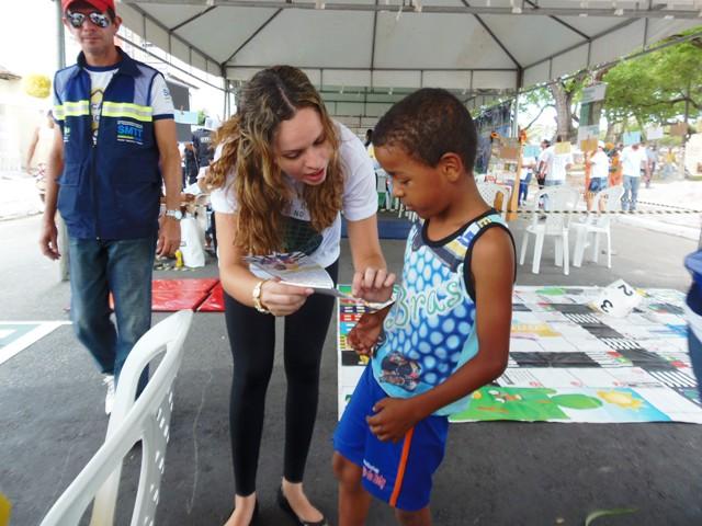 No estande, a criançada que participava do programa Lazer em Meu Bairro teve acesso a um tabuleiro tapete com jogo educativo sobre os direitos e deveres do cidadão no trânsito, bem como o tabuleiro de mesa e pintura à mão. Ainda teve direção defensiva de bicicleta, com percurso acompanhado por instrutor da SMTT.