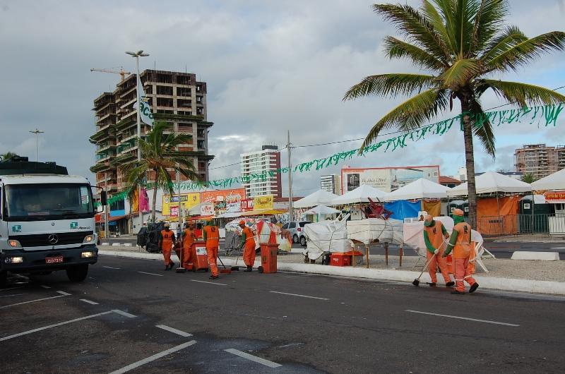 Após cada dia de festa do Carna Caju, que acontece na Passarela do Caranguejo, Orla de Atalaia, uma ‘Operação Limpeza’ é realizada por agentes da Empresa Municipal de Serviços Urbanos (Emsurb), que logo nas primeiras horas da manhã iniciam o trabalho para que as vias estejam devidamente limpas.