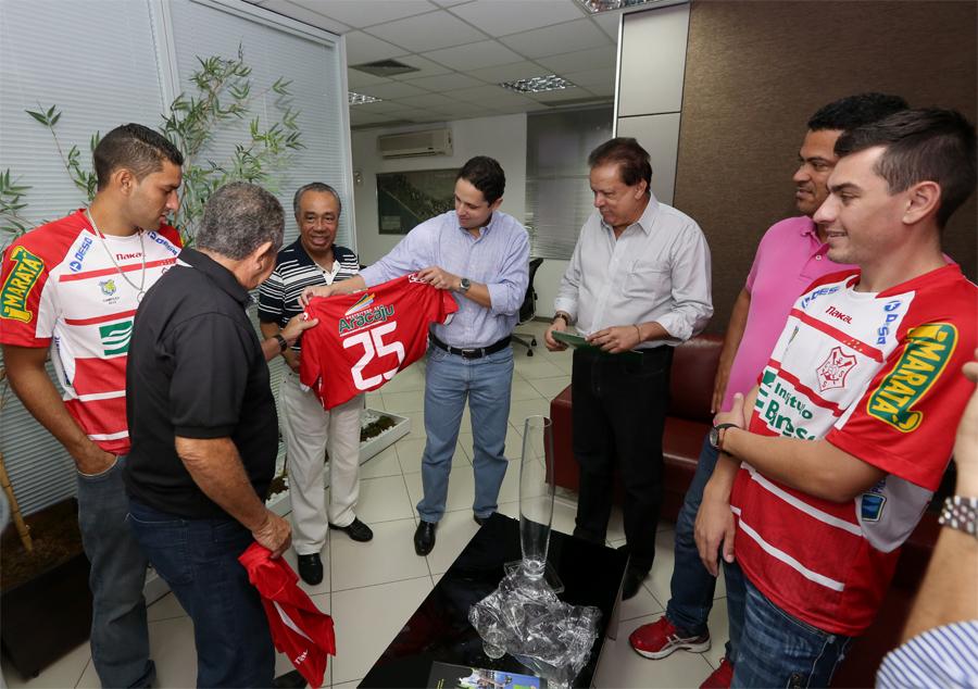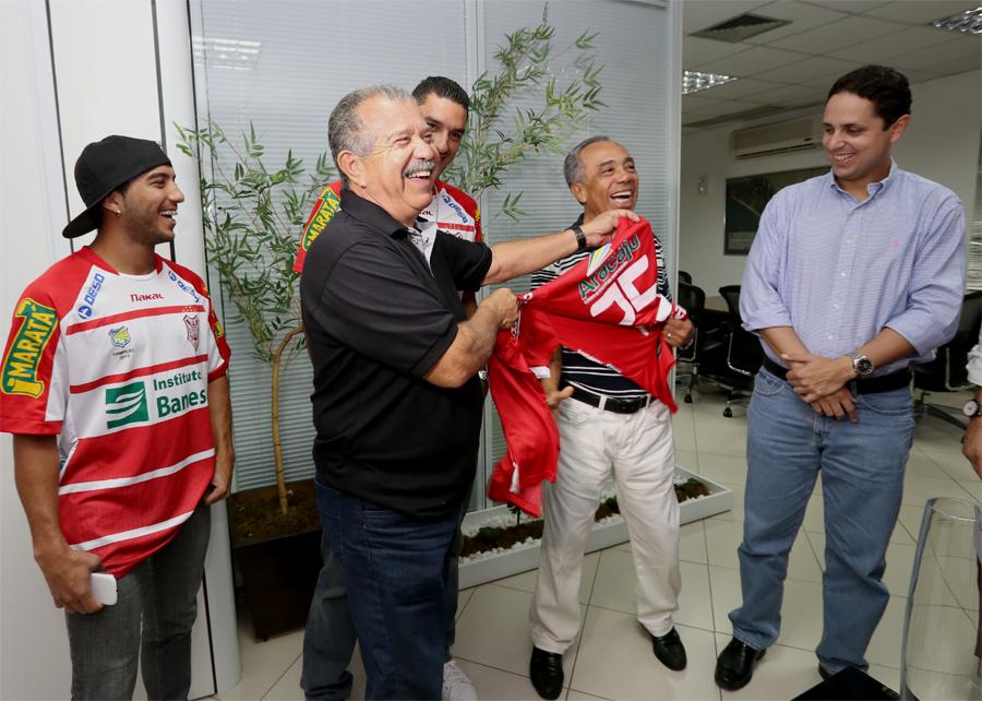 "Nosso objetivo sempre é agradecer o apoio que a Prefeitura nos dá sempre que possível, já que o prefeito valoriza de forma geral os times do estado. Viemos também trazer a proposta de renovação do contrato com a Prefeitura de Aracaju, que será analisada pelo prefeito. Trouxemos a camisa do nosso time e o livro da CBF que registra Sergipe como campeão 2013, todos com a marca da PMA. Sem a colaboração da Prefeitura fica muito difícil manter uma equipe participando do futebol sergipano", afirmou Reinaldo Moura.