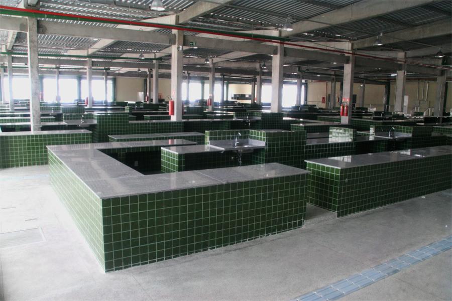 Na área, com mais de 11 mil metros quadrados, foram construídos balcões de granito para venda dos produtos alimentícios, um prédio administrativo e blocos para comercialização de carnes, hortifrutigranjeiro e agricultura familiar, totalizando 188 boxes, além de oito quiosques destinados para bares.