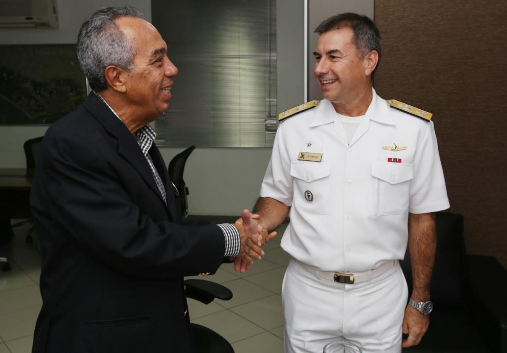 O prefeito João Alves Filho recebeu da manhã de hoje, 06, a visita do almirante Luiz Henrique Caroli do Segundo Distrito Naval, juntamente com o capitão de Fragata Clésio Misson Penoni da Capitania dos Portos de Sergipe. Durante o encontro, o prefeito falou sobre a simpatia que tem pela Forças Armadas Brasileiras e as parcerias que sempre realizam.