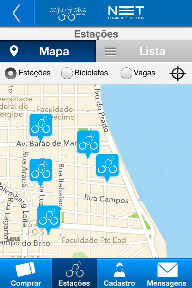 Elas estão localizadas na Praça Almirante Tamandaré, na rua Monsenhor Silveira; Praça Camerino, na rua Vila Cristina; rua Boquim, próxima ao Conservatório de Música; rua Riachuelo; e na Praça Tobias Barreto, pela rua Santa Luzia. Em cada uma delas, estarão disponíveis 10 ‘bikes’ para o usuário do serviço e ainda dois espaços vagos para que as bicicletas liberadas em outras estações possam ser devolvidas após o tempo de uso.