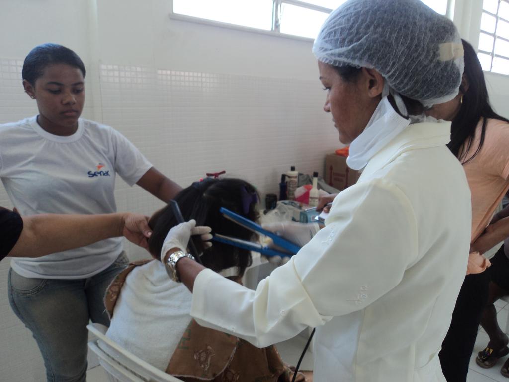 Na UQP do Jardim Esperança, a cabeleireira e instrutora da Fundat, Maria José da Cruz Silva, montou um mutirão formado por ex-alunas e atuais colegas de trabalho para levar tratamentos capilares para as mães da comunidade. No lugar da tradicional escova e corte de cabelo, as profissionais ofereceram cuidados mais sofisticados como hidratações e selagens.