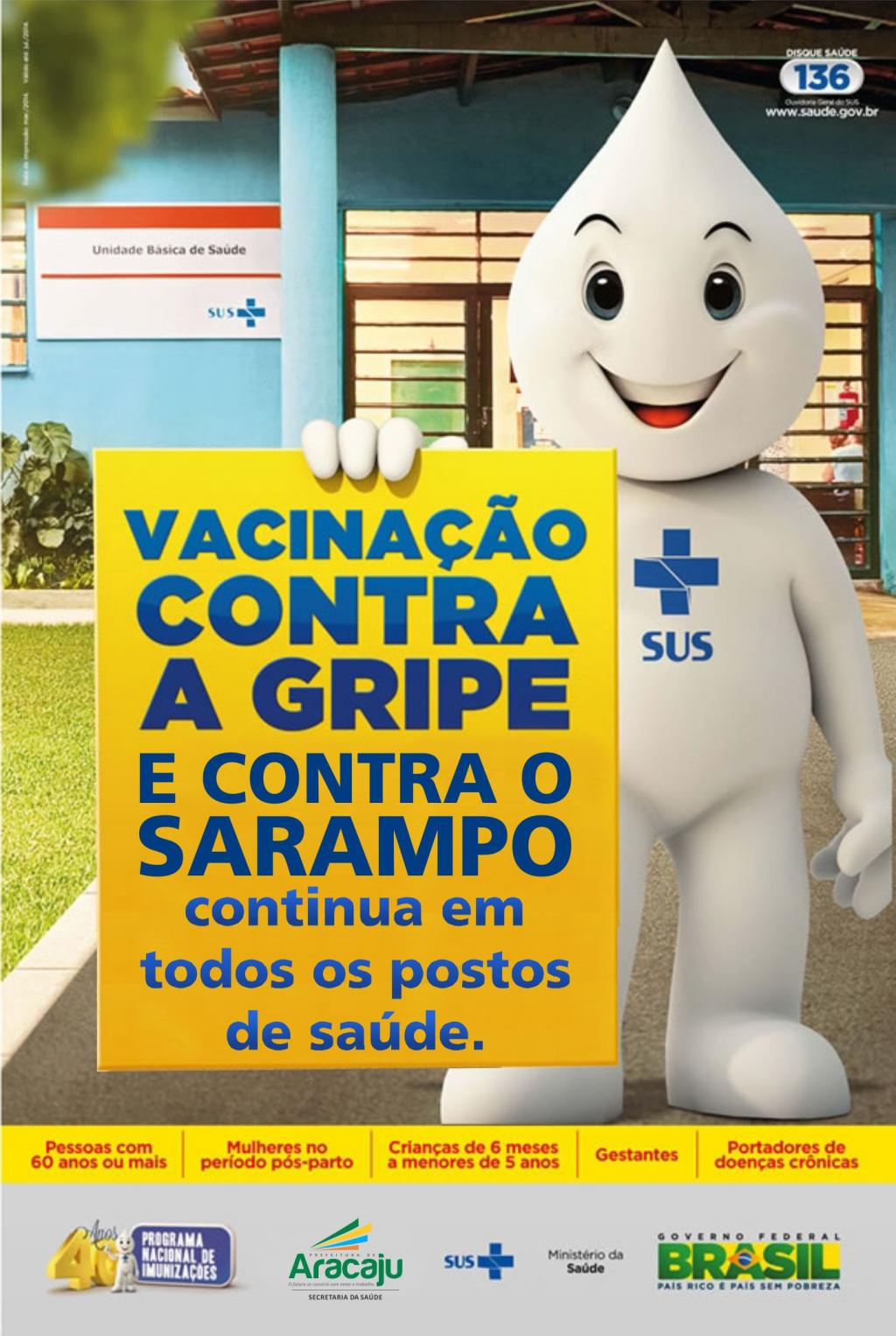 A campanha de vacinação contra a gripe Influenza e contra o Sarampo prossegue em todas as Unidades de Saúde da Família (USF) de Aracaju. Até o momento foram imunizados 64,48% do público alvo para a gripe e 59,99% para o Sarampo. De acordo com Raullina Gomes, coordenadora da Vigilância Epidemiológica da Saúde de Aracaju, a meta estabelecida pelo Ministério da Saúde é de 80% e 95% respectivamente. "A vacinação continua até que esses percentuais sejam atingidos", afirma.