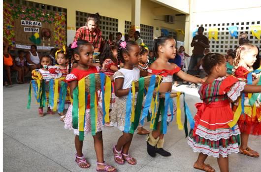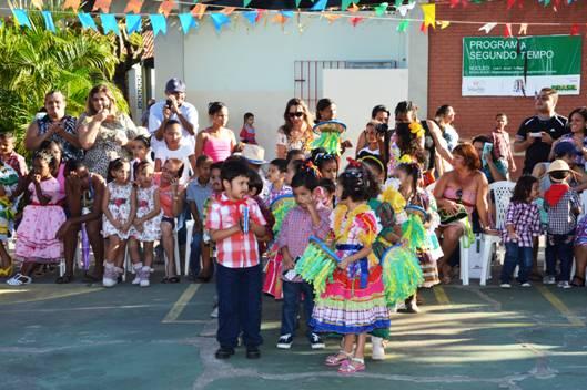 A quadrilha da pré-escola se apresentou com a dança da tapioca e a apresentação da festa do rodeio só com os meninos. O evento ocorreu nas dependências da Escola Municipal de Educação Infantil Jaime Araújo.