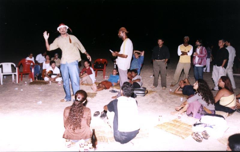 Histórias, músicas e poesias fizeram parte da programação cultural de ontem, 25, do Projeto Verão 2005. Promovido pela Fundação Municipal de Cultura, Turismo e Esportes (Funcaju), o Luau e Sarau Poético reuniu pessoas que junto a uma fogueira na areia da praia de Atalaia, ouviram canções e declamações de poemas com as devidas peformances. Participaram do evento os poetas Ieda Vilela, Daniel Pio, Gilda Costa, Mel, Marilene Braga, Éliton Cunha, George Viana, João Emanuel, José Reis e Ione Paes, além dos músicos Paulo Lobo, Sergival, Wendel Miranda, Carlos Moreno, Mosquito e Heitor. “O evento foi realizado próximo ao palco do projeto e um público eclético marcou presença. As pessoas elogiaram muito e sugeriram que a iniciativa aconteça pelo menos uma vez por mês”, diz Vera Vilar, coordenadora da divisão de Literatura da Funcaju. Segundo ela, a Fundação está tentando manter o evento que também é uma oportunidade para os poetas e artistas sergipanos mostrarem seus trabalhos e se aproximarem do público. “Esta é uma chance para a poesia sergipana. Além disso, as pessoas relaxam e espantam o estresse curtindo a brisa do mar”, frisa Vera. Um buffet com comidas e bebidas típicas foi servido aos participantes na areia da praia. O Projeto Verão 2005 prossegue até o dia 30 de janeiro.
