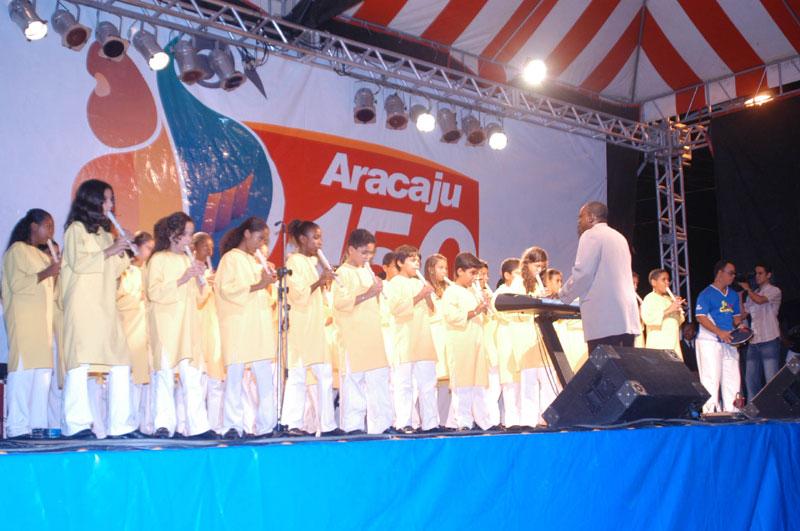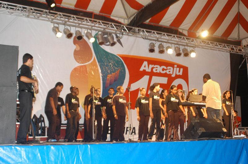 Em mais uma noite de festa pelos 150 anos de Aracaju, a Colina do Santo Antônio reuniu ontem, dia 6, corais sergipanos, além da pianista Maria Olívia, para comemorar o aniversário da cidade. Centenas de pessoas prestigiaram o evento. Os corais da Empresa Municipal de Obras e Urbanização (Emurb), da Petrobras, como também o coral Encantos e os Canarinhos de Aracaju fizeram shows que emocionaram a platéia. A festa ainda foi completada com a apresentação da pianista Maria Olívia, que foi homenageada na noite. É tão lindo esse show. A Prefeitura está de parabéns, que presenteou a nossa cidade, especialmente o bairro Santo Antônio com essa festa, afirmou Bernadete Soares, que reside no bairro Cidade Nova. A sua opinião foi compartilhada com a dona de casa Luiza Mota. É muito bom ter por aqui shows deste tipo por aqui. Estão todos de parabéns. No ponto alto do evento, os corais da Petrobras e da Emurb cantaram juntos o hino do sesquicentenário de Aracaju, de autoria de José Gentil Leite, e arrancaram aplausos da platéia.