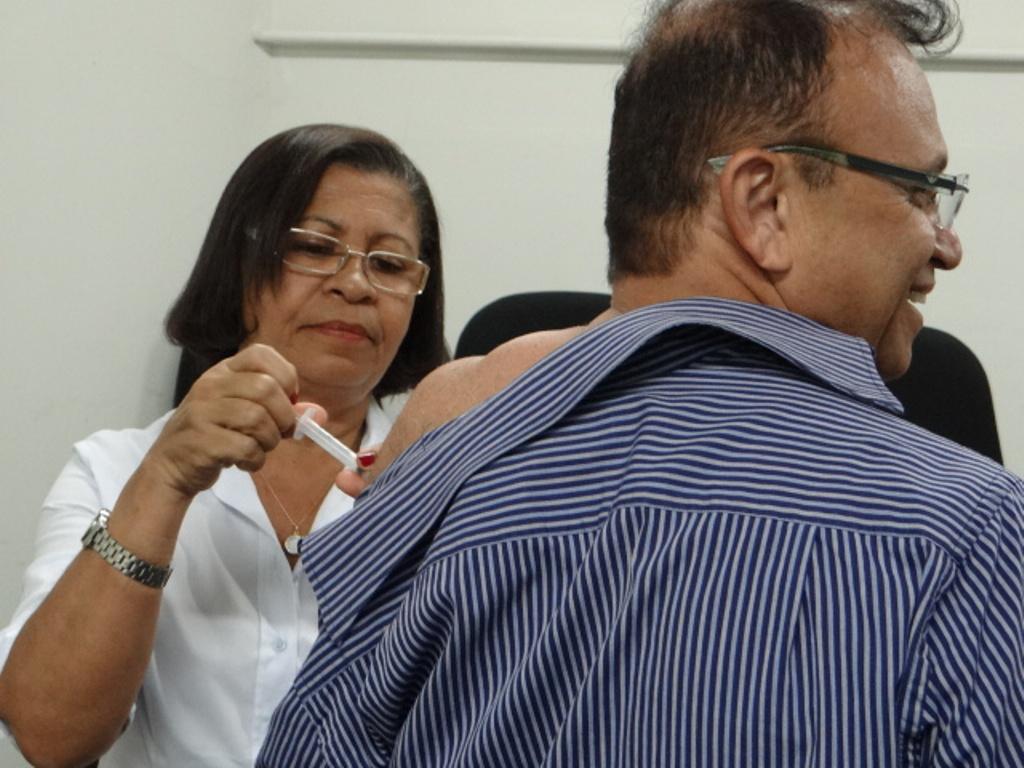 Hoje, dia 25, foi a vez de servidores da Câmara Municipal de Aracaju (CMA) e vereadores receberem vacina contra o vírus H1N1, o causador da gripe Influenza. A ação foi promovida pela Secretaria Municipal da Saúde que enviou equipe de técnicos e enfermeira da Vigilância Epidemiológica para imunizar e orientar os servidores e a população sobre a importância de prevenir a doença.