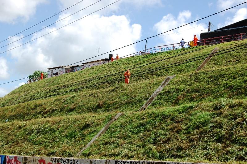 Desde a última sexta-feira, 18 de julho, o talude localizado na avenida Desembargador Maynard, no Bairro América, recebe manutenção da vegetação e limpeza de resíduos pela Empresa Municipal de Serviços Urbanos. Uma equipe de dez profissionais realiza o serviço, previsto para ser concluído nesta quarta-feira, 23.