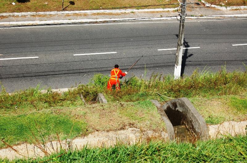 Equipes de limpeza manual de canais desenvolvem o serviço na Av. Principal do Residencial Franco Freire e Canal dos Gabiões, no bairro Santa Maria, e na Av. Perimetral II, Zona de Expansão.