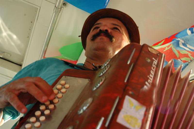Numa iniciativa da Fundação Municipal de Cultura, Turismo e Esportes (Funcaju), em parceria com a Viação Progresso, começou a circular no último sábado, 18, a Marinete do Forró. O veículo oferece, gratuitamente, aos turistas um passeio pelos principais pontos turísticos de Aracaju. O ônibus é devidamente decorado pela arte-educadora e decoradora Lourdes da Silva, com referências do forró e dos festejos juninos. Dentro, o trio de forró de Robertinho dos Oito Baixos anima o público com o autêntico pé-de-serra. Acompanhados por um guia de turismo, hóspedes de toda rede hoteleira da orla são convidados a visitar pontos turísticos da cidade num passeio tranqüilo e agradável. Excelente idéia. O São João é a melhor época de se conhecer Aracaju, disse Rogério Tavares, turista baiano que já agendou seu próximo São João na capital sergipana. A Marinete do Forró estará percorrendo a cidade durante todas as tardes, a partir das 14 horas, no período do Forró Caju 2005. Até o dia 29 de junho, a Marinete do Forró sairá do Hotel Quality, passando por pousadas e hotéis da orla de Atalaia e do bairro Coroa do Meio recolhendo turistas. Continuando o percurso, a Marinete faz as seguintes paradas: Mirante da 13 de Julho, Museu de Rua da Ponte do Imperador, mercados centrais, orla do bairro Industrial, Colina do Santo Antônio, Galeria Álvaro Santos e feira de artesanato da praça Olímpio Campos.