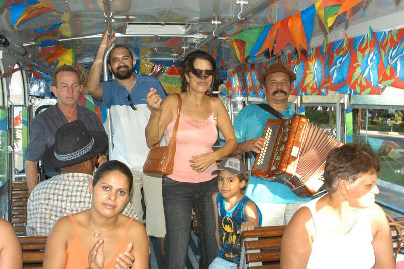 A Marinete do Forró, um dos principais instrumentos turísticos da época junina na capital sergipana, continua circulando pelas ruas da cidade lotado de visitantes que curtem um longo passeio pelos principais pontos turísticos. A iniciativa é da Fundação Municipal de Cultura, Turismo e Esportes (Funcaju), em parceria com a Viação Progresso. Acompanhados por um guia de turismo, hóspedes de toda rede hoteleira da orla são convidados a visitar pontos turísticos da cidade num passeio tranqüilo e agradável. Excelente idéia. O São João é a melhor época de se conhecer Aracaju, disse Rogério Tavares, turista baiano que já agendou seu próximo São João na capital sergipana. A Marinete do Forró estará percorrendo a cidade durante todas as tardes, a partir das 14 horas, no período do Forró Caju 2005. Até o dia 29 de junho, a Marinete do Forró sairá do Hotel Quality, passando por pousadas e hotéis da orla de Atalaia e do bairro Coroa do Meio recolhendo turistas. Continuando o percurso, a Marinete faz as seguintes paradas: Mirante da 13 de Julho, Museu de Rua da Ponte do Imperador, mercados centrais, orla do bairro Industrial, Colina do Santo Antônio, Galeria Álvaro Santos e feira de artesanato da praça Olímpio Campos.