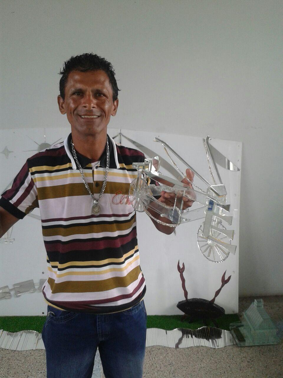 O artista sergipano que produz esculturas em vidro começou a realizar esse trabalho quando morava em São Paulo. "Tive essa ideia a partir de materiais que eram descartados e poderiam ser reaproveitados tendo outro destino e se transformando em obras de arte", comenta Wellington Oliveira.