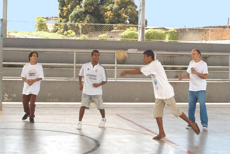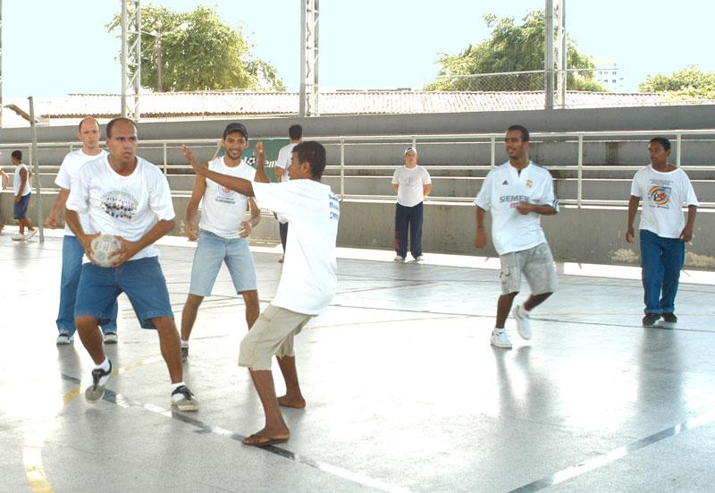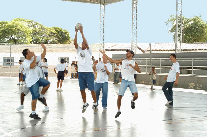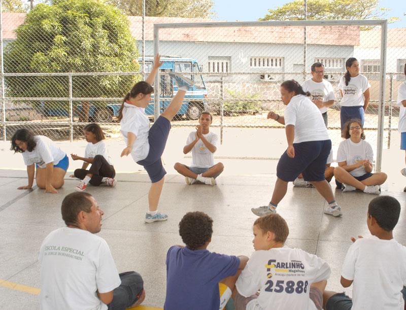 Contribuir no processo de socialização e integração à sociedade, através do pleno exercício de direitos básicos com respeito e dignidade. Este é o objetivo do projeto Segundo Tempo em Aracaju no trabalho de atendimento aos portadores de necessidades especiais. Idealizado pelo Ministério do Esporte, com realização da Fundação Municipal de Cultura, Turismo e Esportes (Funcaju), o projeto Segundo Tempo contempla dezenas de crianças e jovens portadoras de necessidades especiais que, duas vezes por semana, participam de atividades recreativas no núcleo Instituto Lourival Fontes, no conjunto Castelo Branco. Os trabalhos desenvolvidos com estes jovens são pensados e elaborados de acordo com o interesse dos alunos estimulando movimentos (lateralização, pegada, fortalecimento dos movimentos), interação e inclusão social, numa promoção à melhoria da saúde e ao aumento da auto-estima. O projeto promove a auto-estima deles. Eles acreditam mais neles mesmos, explica o monitor César Manga Larga, que trabalha com os portadores desde setembro passado. Segundo o monitor, uma das demonstrações da importância e influência do Segundo Tempo na vida destes alunos é o reconhecimento dos pais. César ressalta a visível mudança na coordenação psíquico-motora. Eles tem conseguido realizar atividades essenciais que antes não faziam, como amarrar o tênis e tomar banho sozinhos, disse. Trabalho em conjunto Os portadores de necessidades especiais e alunos do abrigo para crianças e adolescentes do Instituto Lourival Fontes, que também fazem parte do projeto Segundo Tempo, são freqüentemente estimulados a participar de atividades em conjunto. Uma solução encontrada pelos monitores para trabalhar a interação social sem discriminação foi a prática de atividades coletivas com times mistos. Havia discriminação e hoje eles aceitam os especiais, diz Ana Lúcia, presidente do Instituto. Eles não brigam com ninguém, brincam direitinho e a gente ensina a eles, relata Cristiano, 14 anos, um dos alunos atendido pelo abrigo. Ana Lúcia comenta ainda o outro lado de inclusão social do projeto Segundo Tempo para as crianças e jovens atendidas no Instituto. A disciplina foi bem trabalhada, hoje testemunhamos o companheirismo e coleguismo, como a diminuição do nível de agressividade entre eles, relata. Segundo a presidente, o projeto ocupa o tempo ocioso das crianças. Até porque eles moram aqui e estar ocupado com o Segundo Tempo faz com que eles saiam do mundo em que viviam antes. Estamos muito agradecidos pela contemplação da instituição com o projeto, afirma.
