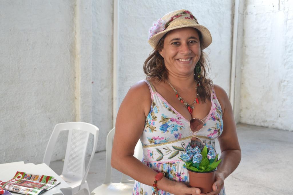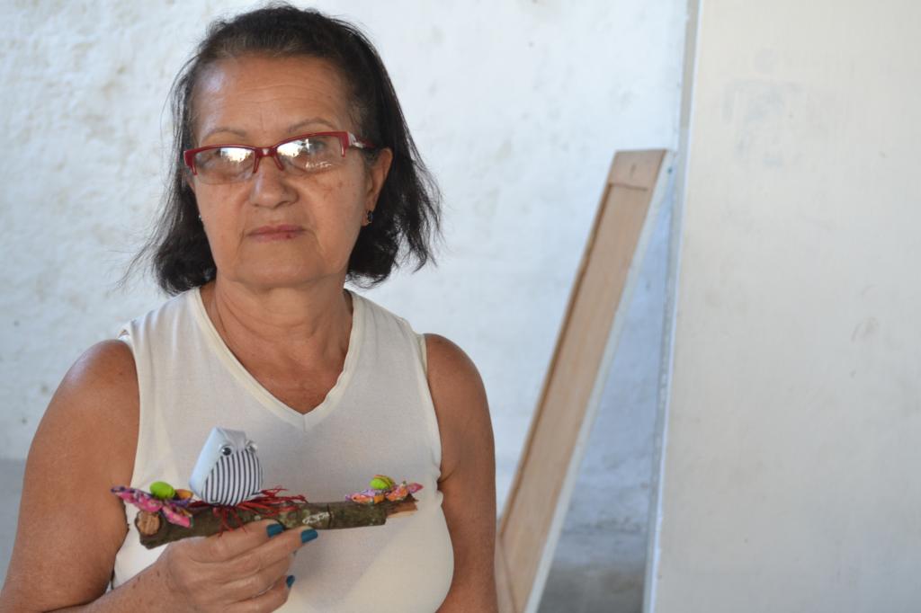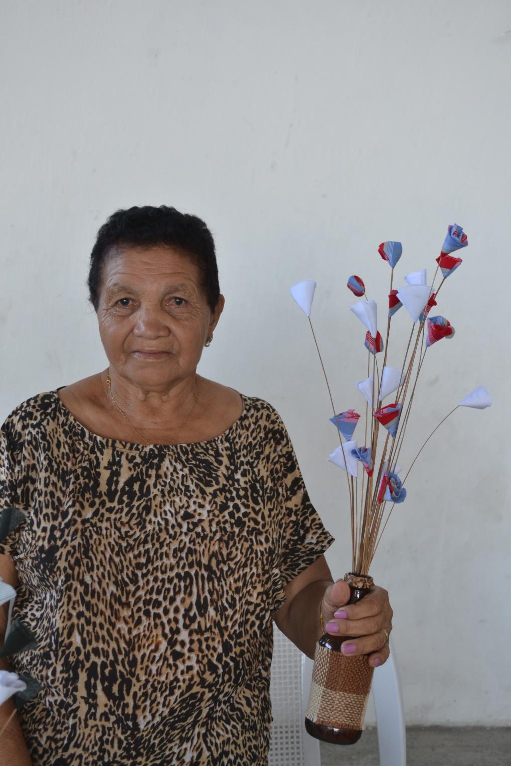 Com 70 anos de idade, a aluna Carmosa Maria de Jesus foi convidada a participar da oficina pela coordenadora da associação. Experiente em fazer ponto cruz, biscuit e também fuxico, ela conta que seu foco sempre foi produzir peças artesanais para sua casa e para presentear a família e amigos. "A gente conversava, se divertia muito, tomava chazinho e biscoitinho. Tudo de bom tinha aqui", diz Carmosa, entusiasmada com a oportunidade obtida.