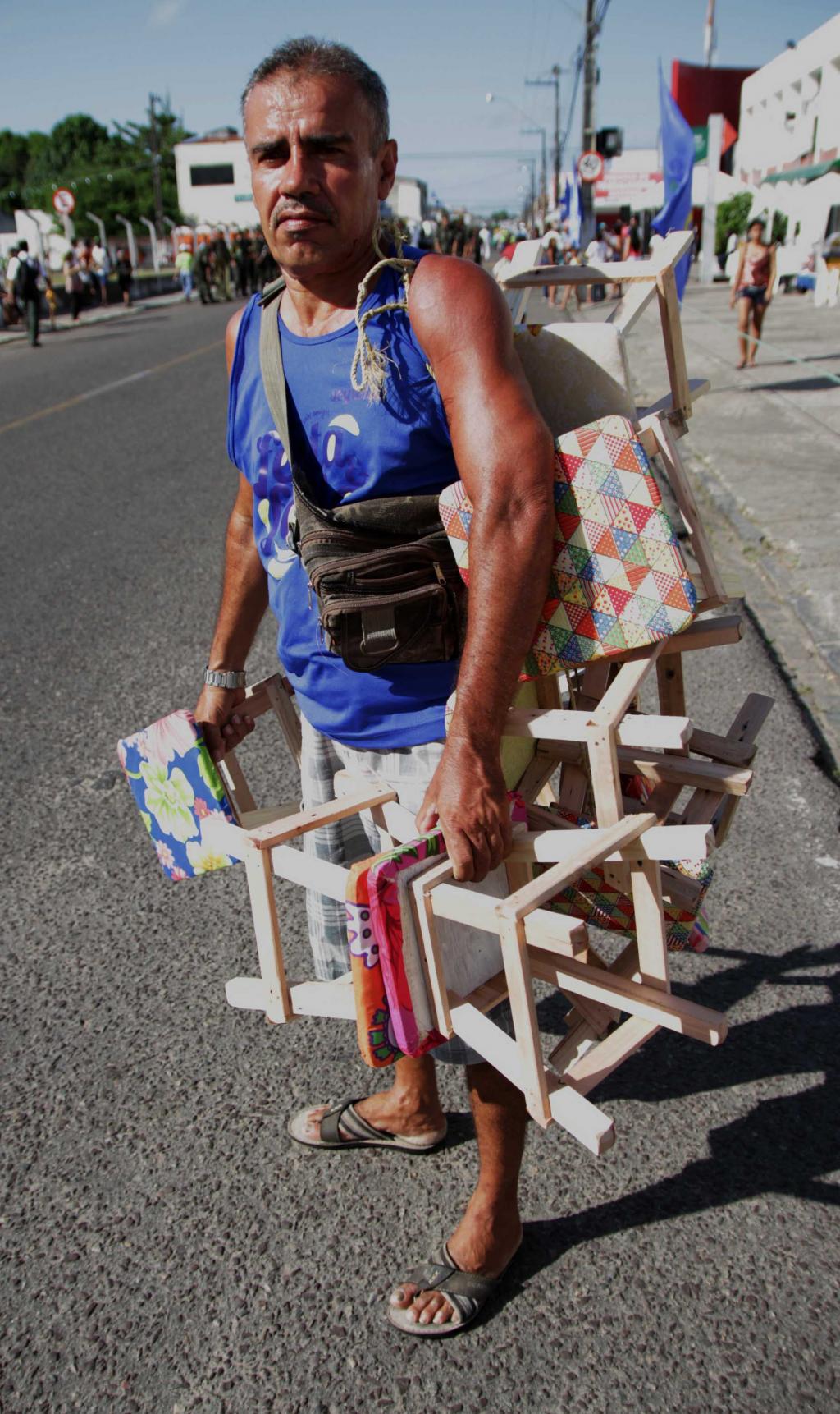 Além de ambulantes vendendo comida e bebida, havia também os que usavam da criatividade para faturar. É o caso de Roberto Carlos, que virou sucesso no desfile por vender banquinhos a um preço justo. "A venda é ótima, vendo há cinco anos aqui no desfile e sou o único que oferece banquinhos para que os que assistem possam sentar e contemplar o cortejo". Quanto à renda adquirida ele não nega: desde cedo vendendo realmente tem sido muito gratificante para o vendedor.