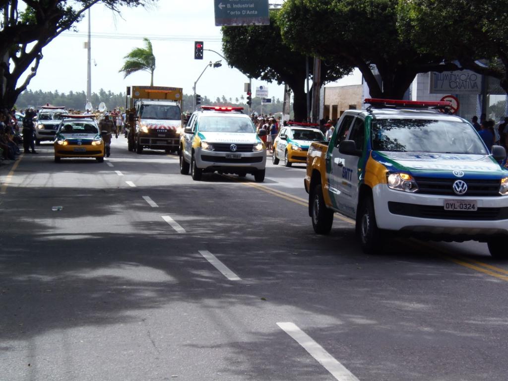Além do controle do tráfego, mais de dez Agentes de Trânsito participaram do desfile motorizado apresentando à população as viaturas padronizadas e equipadas com giroflex e sirenes, equipamentos que auxiliam nas operações de engenharia, sinalização, trânsito e fiscalização dos transportes urbanos.
