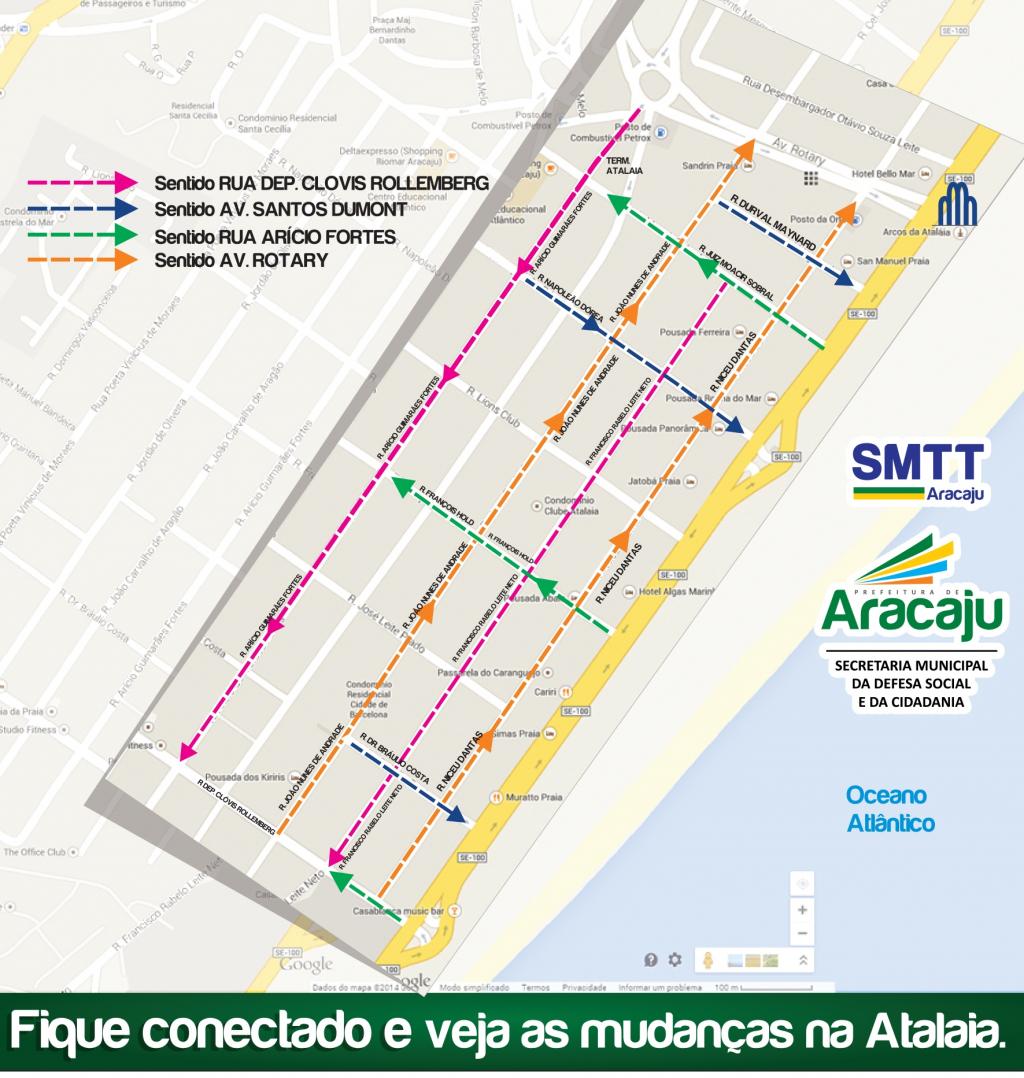 A Superintendência Municipal de Transportes e Trânsito (SMTT), órgão vinculado à Secretaria Municipal da Defesa Social e da Cidadania, informa mudança de circulação no bairro Atalaia, a partir de segunda-feira, 15 de setembro.