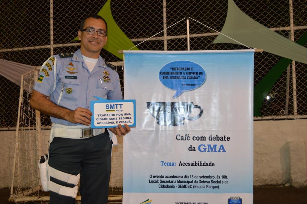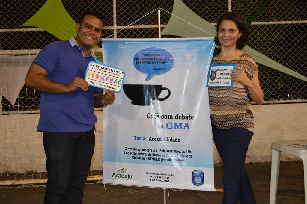 A Guarda Municipal de Aracaju (GMA) realizou na noite de ontem, 15, a segunda edição do Café com Debate, evento que reúne guardas municipais (GMs) e pessoas da comunidade para reflexão e discussão de temas comuns ao cotidiano dos agentes da GMA. Nesta edição, o assunto discutido foi a Acessibilidade, em virtude da adesão da Secretaria Municipal da Defesa Social e da Cidadania (Semdec) e dos órgãos vinculados ao Projeto Aracaju Acessível. O Café com Debate da GMA foi parte da programação do projeto, encabeçado pelo vereador Lucas Aribé, que visa sensibilizar a sociedade aracajuana para promover a acessibilidade nos diferentes segmentos.